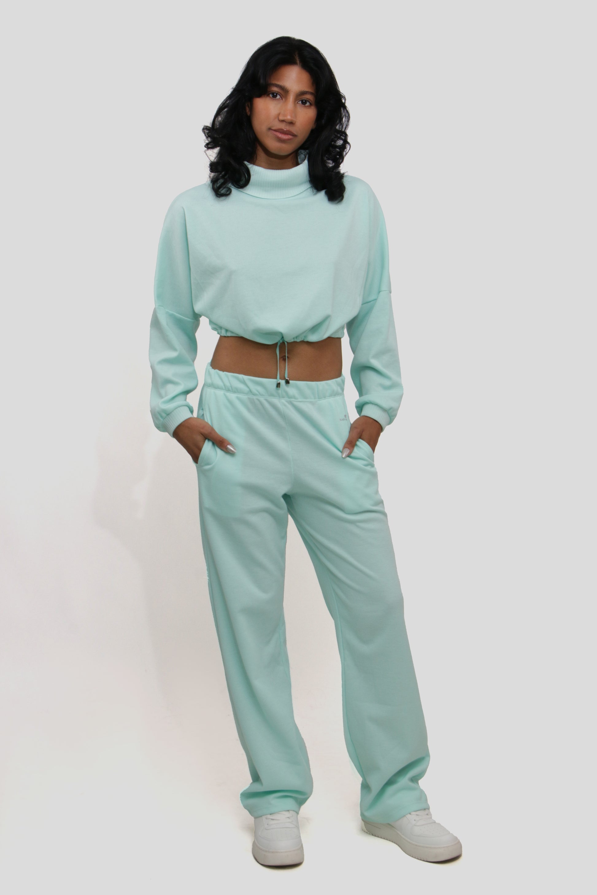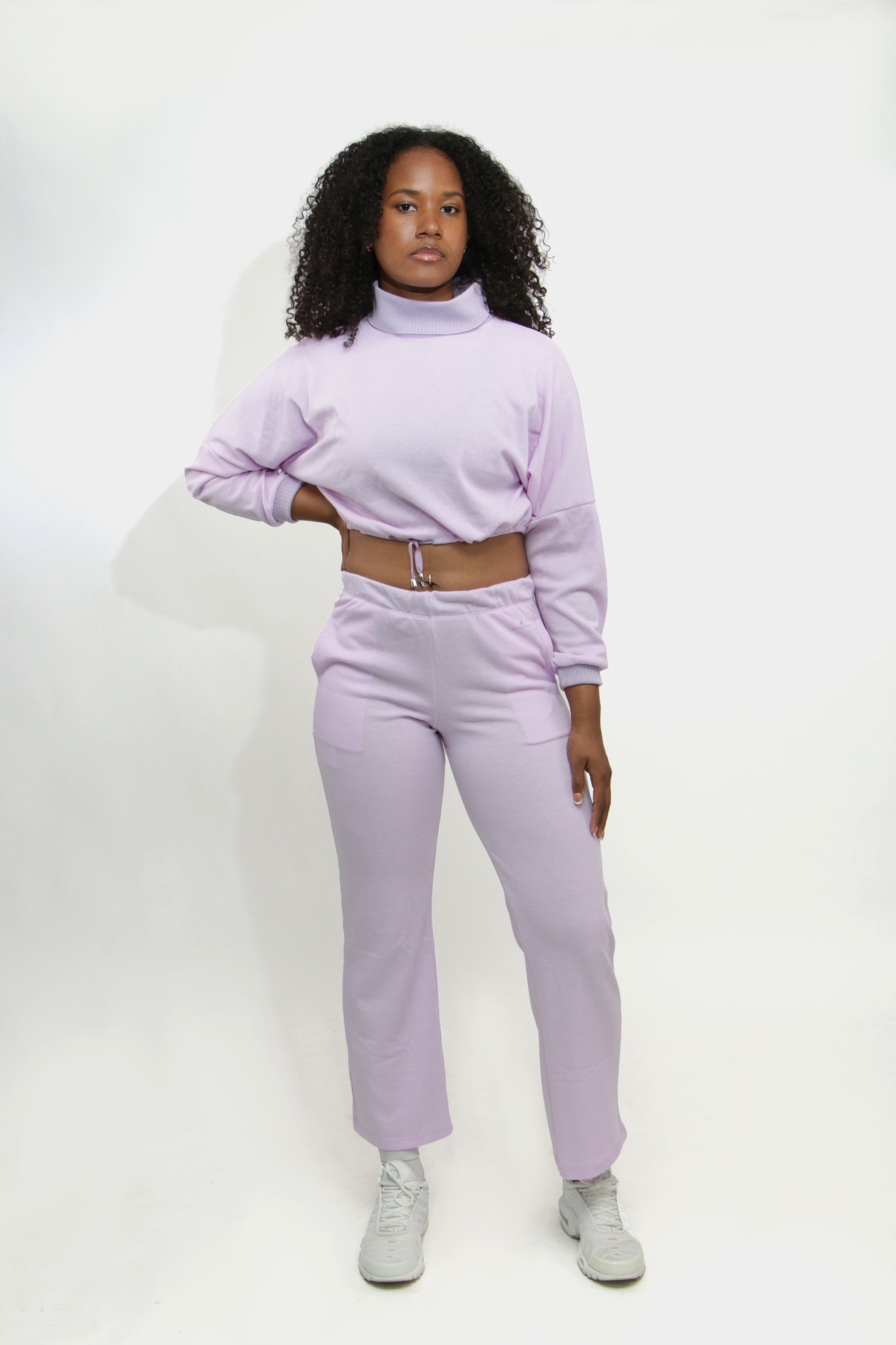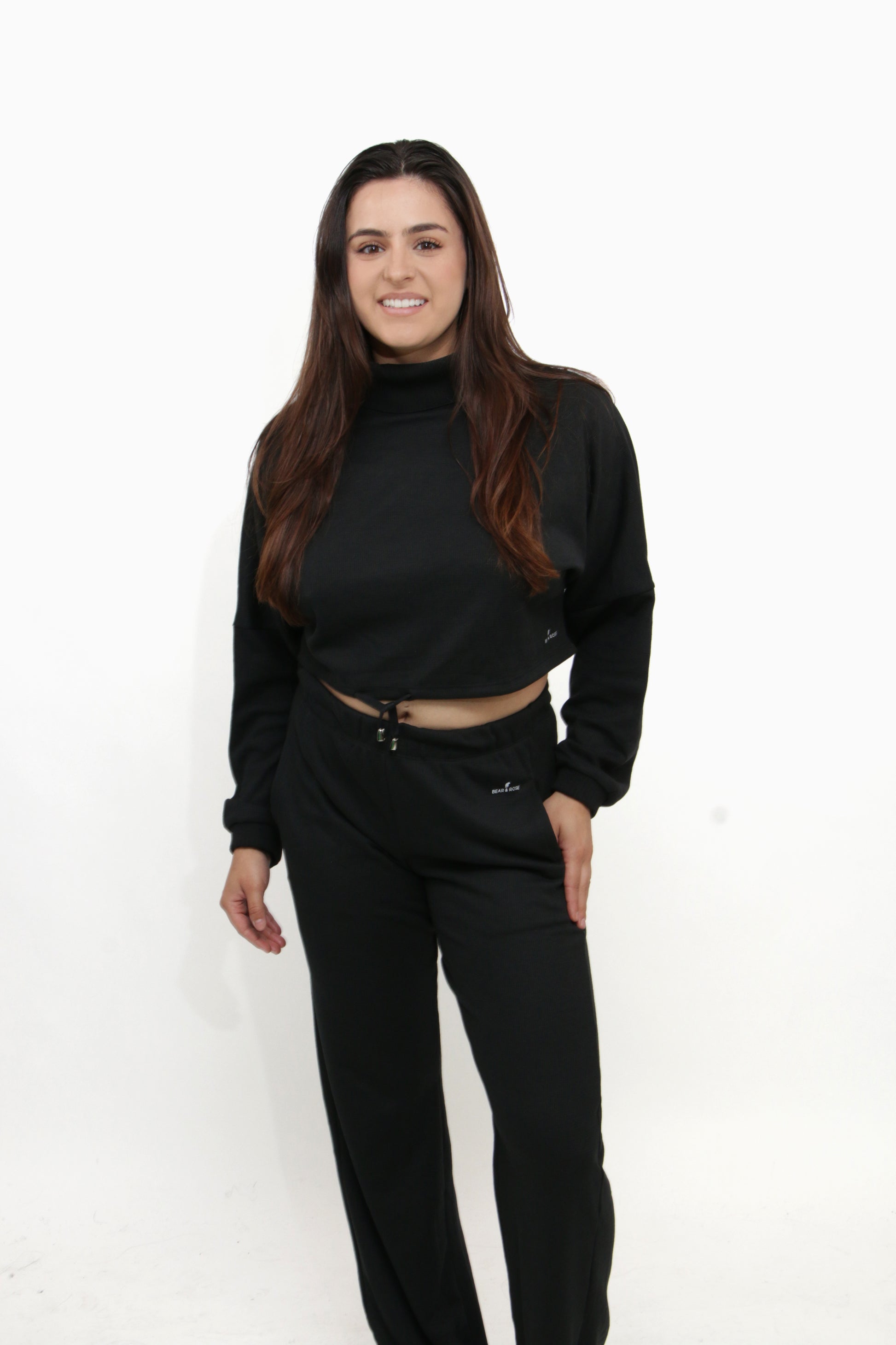The Dreamy Girl Set combines technical design with functional comfort. The cropped long sleeve turtleneck features an adjustable waist mechanism for optimal fit customization, while utilizing high-performance breathable fabric that regulates body temperature. Complementary straight-cut pants maintain the set's cohesive aesthetic while allowing unrestricted movement. This ensemble delivers a relaxed silhouette without compromising on structural integrity or material quality.